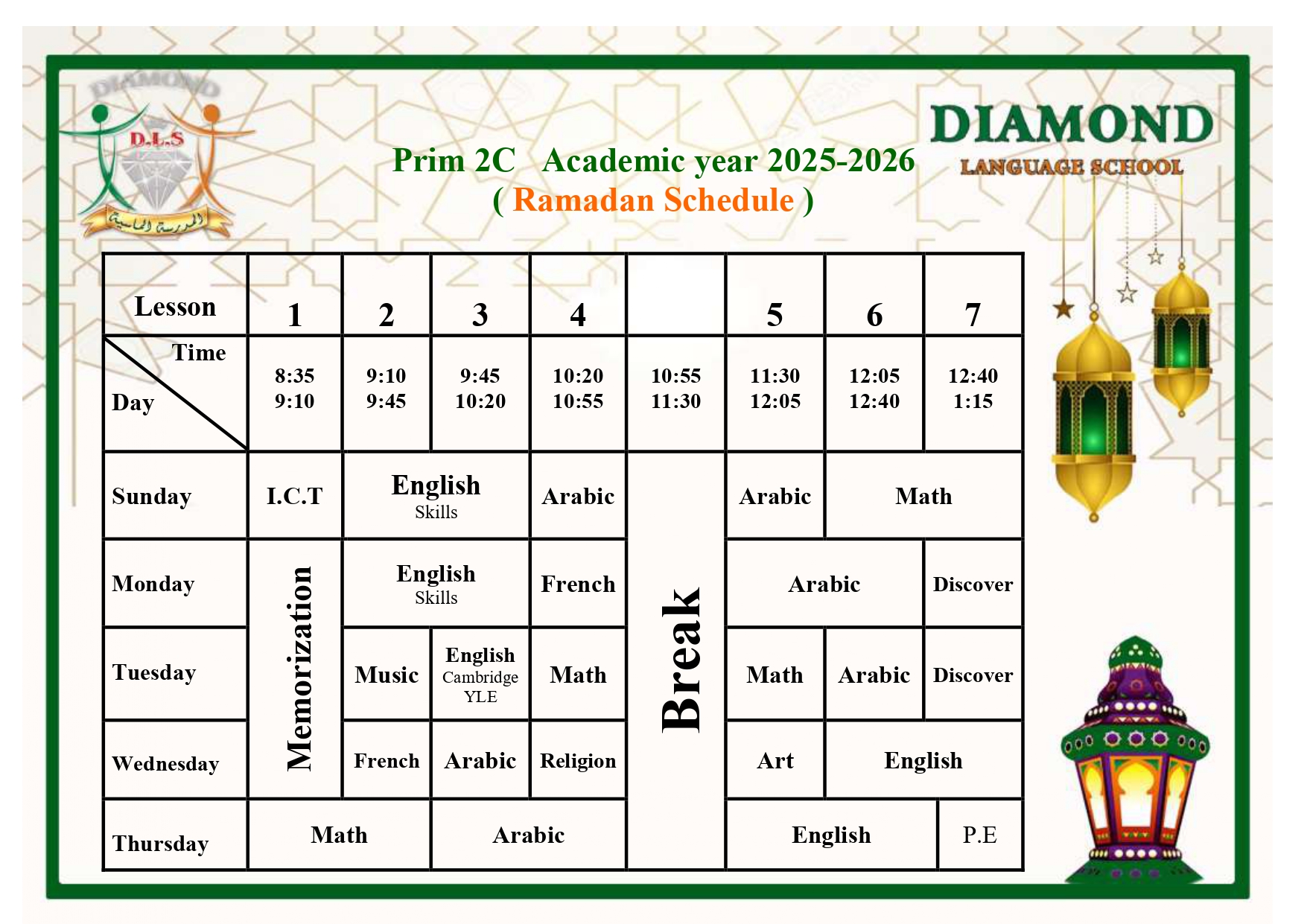 Ramadan Schedule